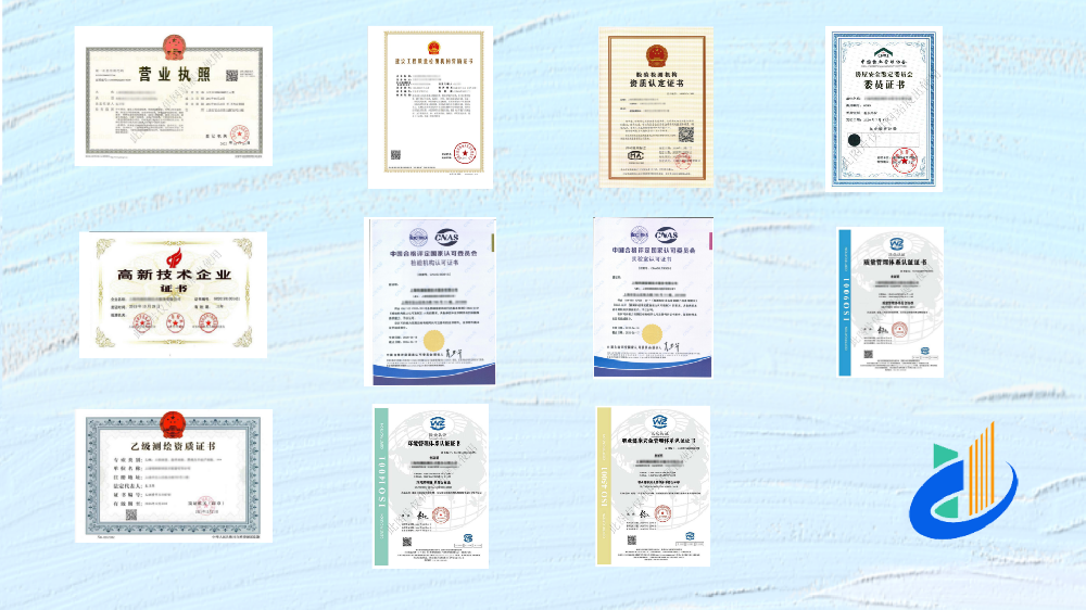 公司擁有上海市市場監(jiān)督管理局頒發(fā)的檢驗檢測機構(gòu)資質(zhì)認定證書(CMA),上海市住房和城鄉(xiāng)建設(shè)管理委員會頒發(fā)的建設(shè)工程質(zhì)量檢測機構(gòu)資質(zhì)證書,上海市建設(shè)工程檢測機構(gòu)評估證書,上海市規(guī)劃和自然資源局頒發(fā)的測繪資質(zhì)證書,并通過了中國合格評定國家認可委員會的實驗室認可和檢驗機構(gòu)認可,獲得CNAS雙資質(zhì)證書代表公司在檢測行業(yè)邁上了一個新的臺階。同時企業(yè)還是上海市市場監(jiān)督管理局戶外招牌檢測資質(zhì)名錄企業(yè)之一。